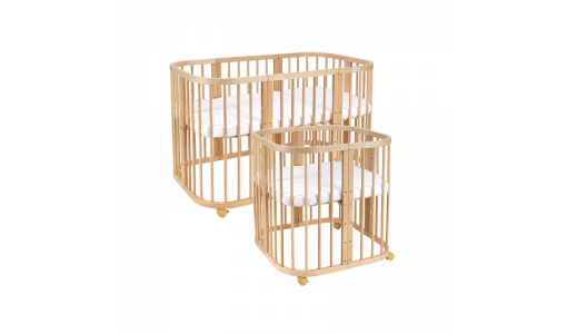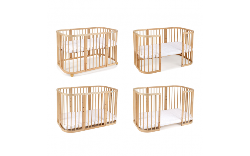 Łóżeczko 7w1 z materacem jest wielofunkcyjne. Zdobyło sympatię wielu rodziców, ponieważ może być wykorzystywane na wielu etapach życia dziecka. Mebelek rośnie razem z maluszkiem i dostosowuje się do jego potrzeb. Został wykonany z drewna bukowego i pomalowany ekologicznym lakierem na bazie wody. To produkt spełniający wszystkie normy bezpieczeństwa.