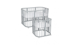 Mniejsze łóżeczko: wys. 75 cm, szer. 77,5 cm, dł. 77,5 cm.