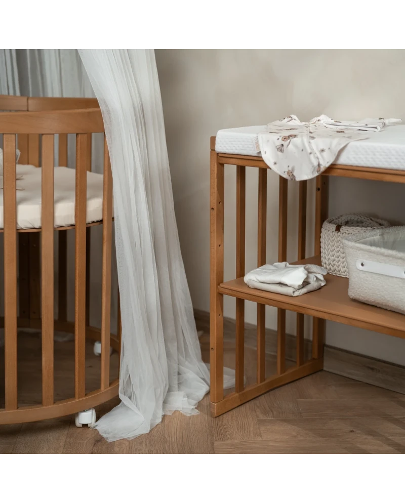 Nasze łóżeczko owalne 7w1 to efekt wielu lat pracy i doświadczenia. Zostało wykonane z drewna bukowego, które wyróżnia się solidnością, a jednocześnie lekkością. Ten dziecięcy mebelek stanie się główną ozdobą wnętrza i funkcjonalnym elementem wyposażenia. Zapewni maluszkowi spokojny i bezpieczny sen.