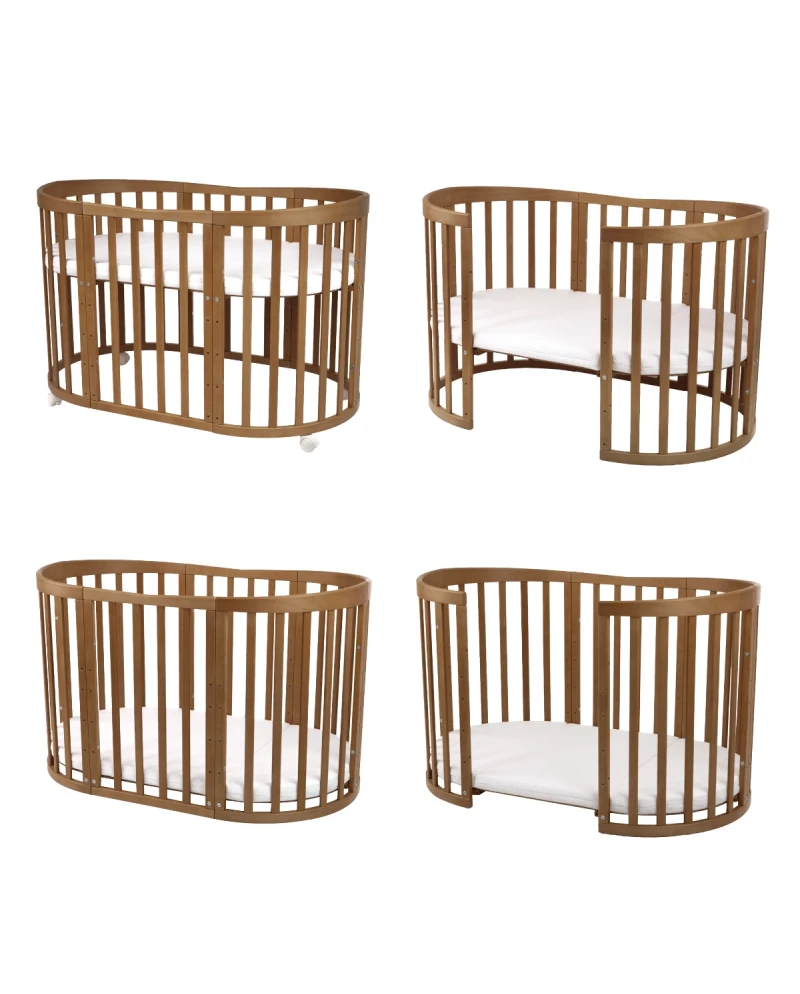 Łóżeczko owalne 7w1 jest praktyczne, eleganckie i trwałe. To wybór na lata – posłuży dziecku od momentu narodzin aż do 10. roku życia lub jeszcze dłużej - wszystko zależy od rozwoju Twojego dziecka. Zostało wykonane ze starannie wyselekcjonowanych materiałów, gwarantuje maluszkowi bezpieczeństwo i komfort.